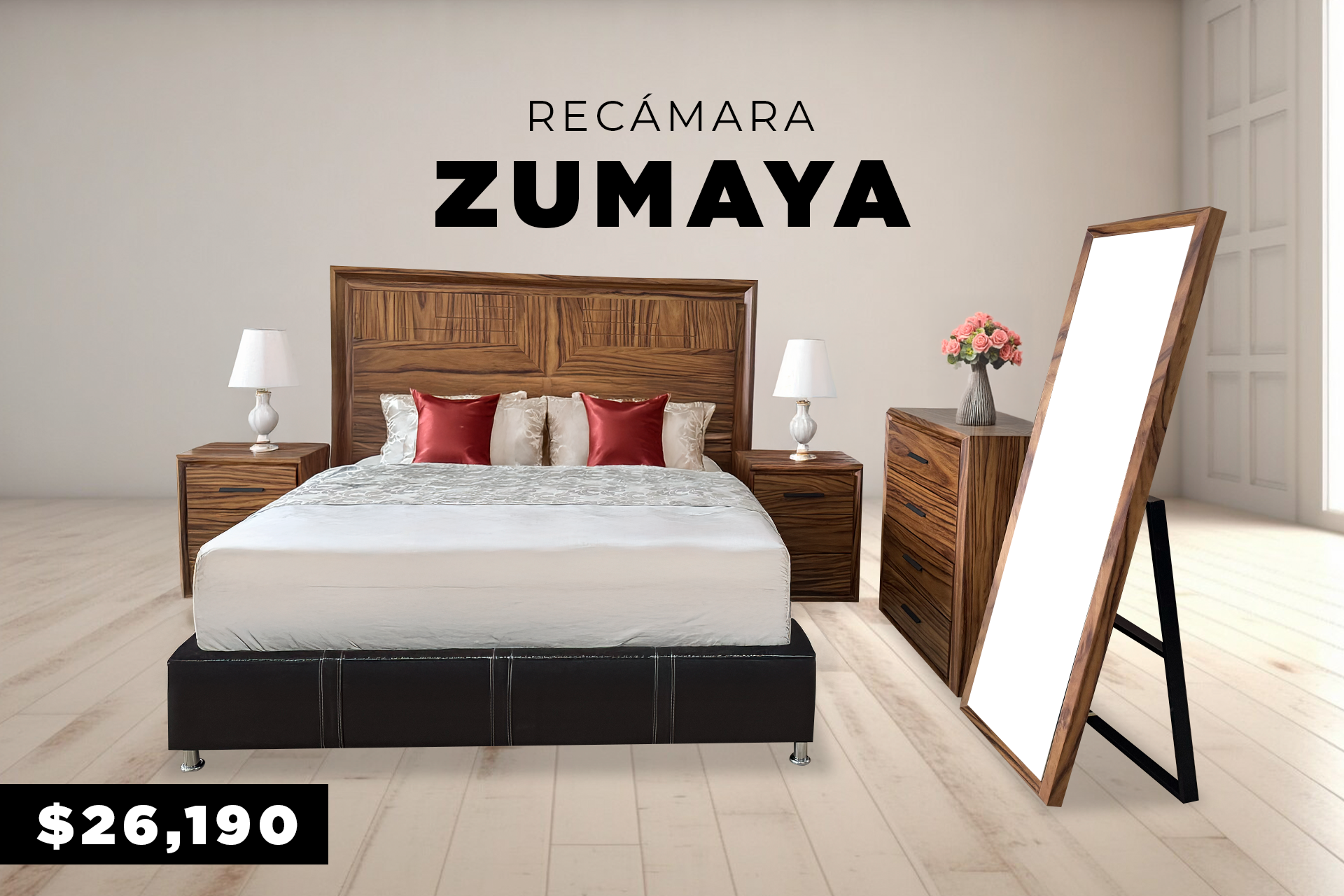 Burós con amplio almacenamiento, cabecera con diseño vanguardista, espejo de cuerpo completo, cajonera multifuncional con amplio almacenamiento y enchapada en Tzalam